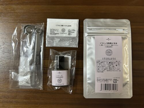 楽天市場で化粧品原料を3点と軽量スプーン購入しました。