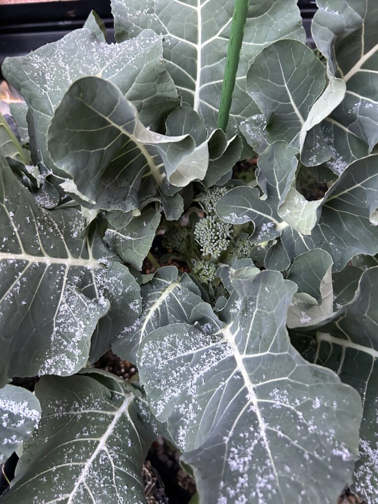 庭の茎ブロッコリーの葉をかきわけてみると